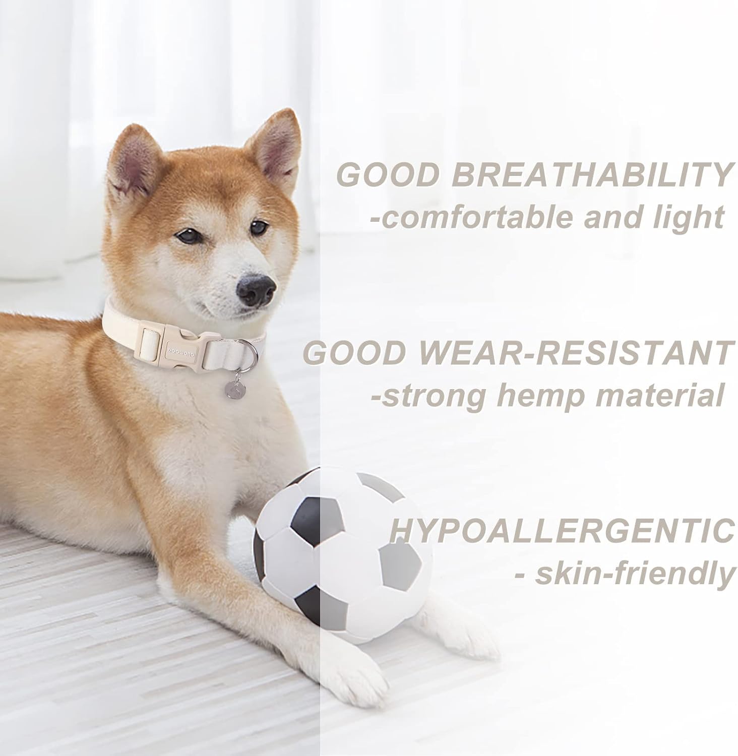 [NATURAL MATERIAL] DOGWONG dog collars are made with cotton and linen,are natural with good permeability,suitable for daily wear by dogs.