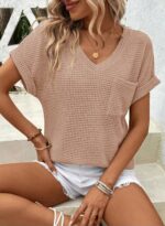 Womens Tops Summer V Neck Casual Trendy Waffle Knit Shirts