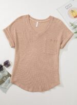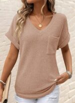 Dokotoo Womens Waffle Knit Tops 2025 Spring Summer V Neck Shirts Casual Trendy Women’s Blouses Basic Tee