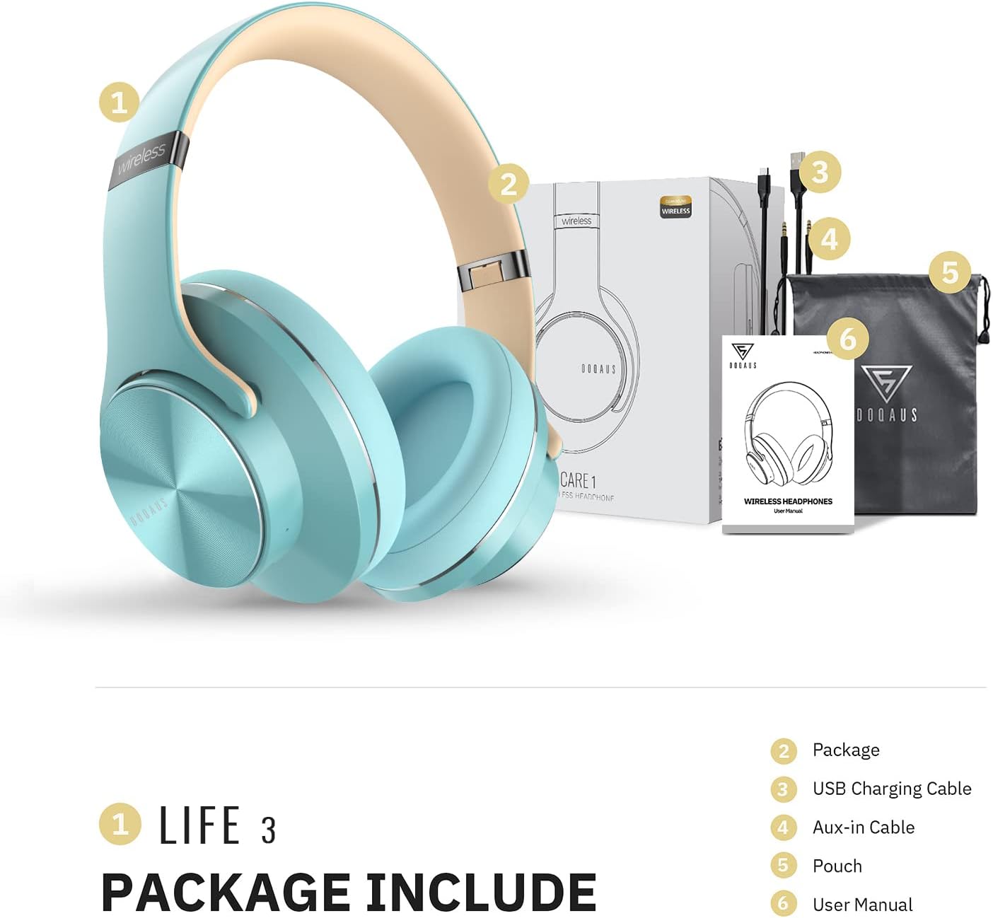 [Up to 90 Hours of Playtime]: With up to 90 Hours of listening time in Bluetooth mode, and 10 minutes of charging for 5 hours of listening, you’ll always have music to inspire you. Regardless of whether you want to use the convenience of Wireless Headphones Bluetooth or the long-lasting properties of a wired connection (3.5 mm audio cable included), you have the choice with the DOQAUS Bluetooth Headphones over ear.