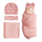 DRESHOW BQUBO Newborn Receiving Blanket Toddler Warm for Girls with Bow Hat and Bow Headband Shower Gift
