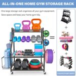 Dumbbell Rack, Yoga Mat Storage Rack – Weight Rack for Dumbbells, Home Gym Storage Rack for Yoga Mat, Dumbbells and Kettlebells, All in One Workout Equipment Storage with Caster Wheels