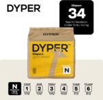 DYPER – Baby Diapers Hypoallergenic Cloth Alternative Day & Overnight Protection – Made with Plant-Based* & Honest Ingredients – Size 0 (34 Count)