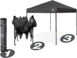 E-Z UP Ambassador Instant Pop Up Canopy Tent, 10′ x 10′, Roller Bag and 4 Piece Spike Set, Steel Gray