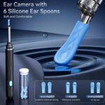 【Earwax Removal Kit Contains】: 1080P HD Ear Cleaner with Camera*1, Dust Cover*1, Removable metal Ear Spoon*1, Silicone Ear Spoon Covers*6, Silicone Ear Spoon Cover Storage Bottle*1, Traditional Ear Care Kits*5, Cleaning Brush*1, Charging Cable*1, Instruction Manual*1