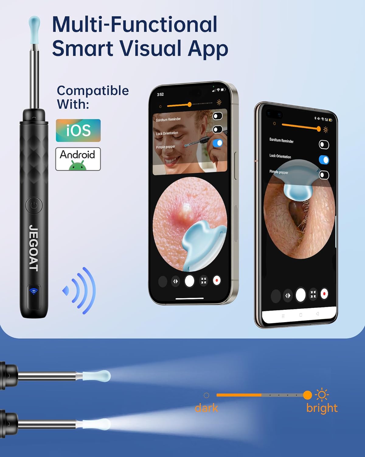 Smart Visual App: Easily connect via WiFi and Bluetooth to our App, compatible with iOS and Android; See real-time images of your ear, and capture or save photos and videos for easy sharing and tracking of changes in your ear health