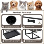 STURDY ALL IRON: The dog bowl stand is made of industrial grade iron which is more durable compared to plastic bowl stands. The Dog Bowl Holder has a bottom that adjusts backward to prevent your dog from tipping over while eating