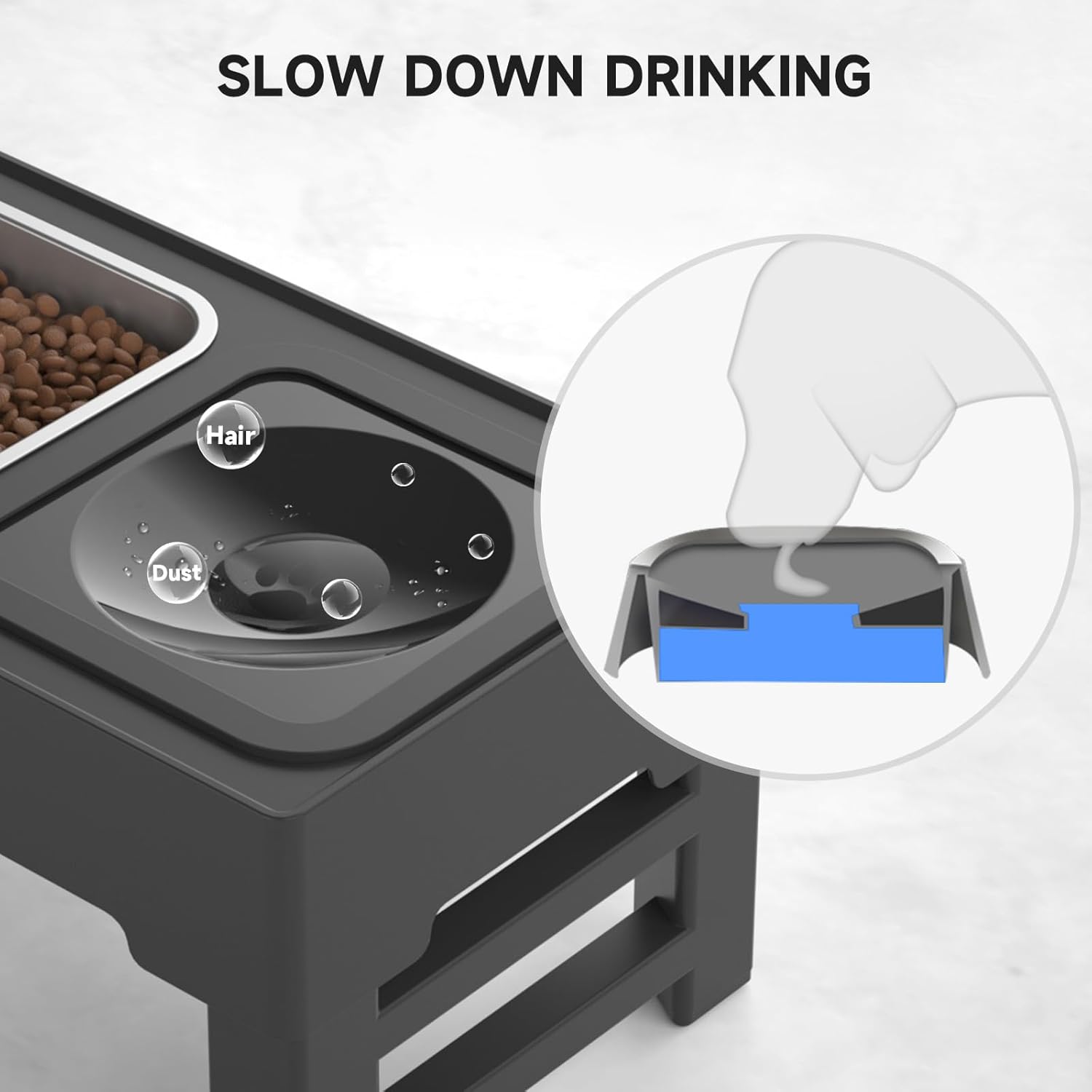 ELS PET Elevated Dog Bowls, Adjustable Raised Dog Bowls with No Spill Dog Water Bowl and Stainless Steel/Slow Feeder, for Small Medium Large Dogs,Cats & Pets (Stainless Steel)