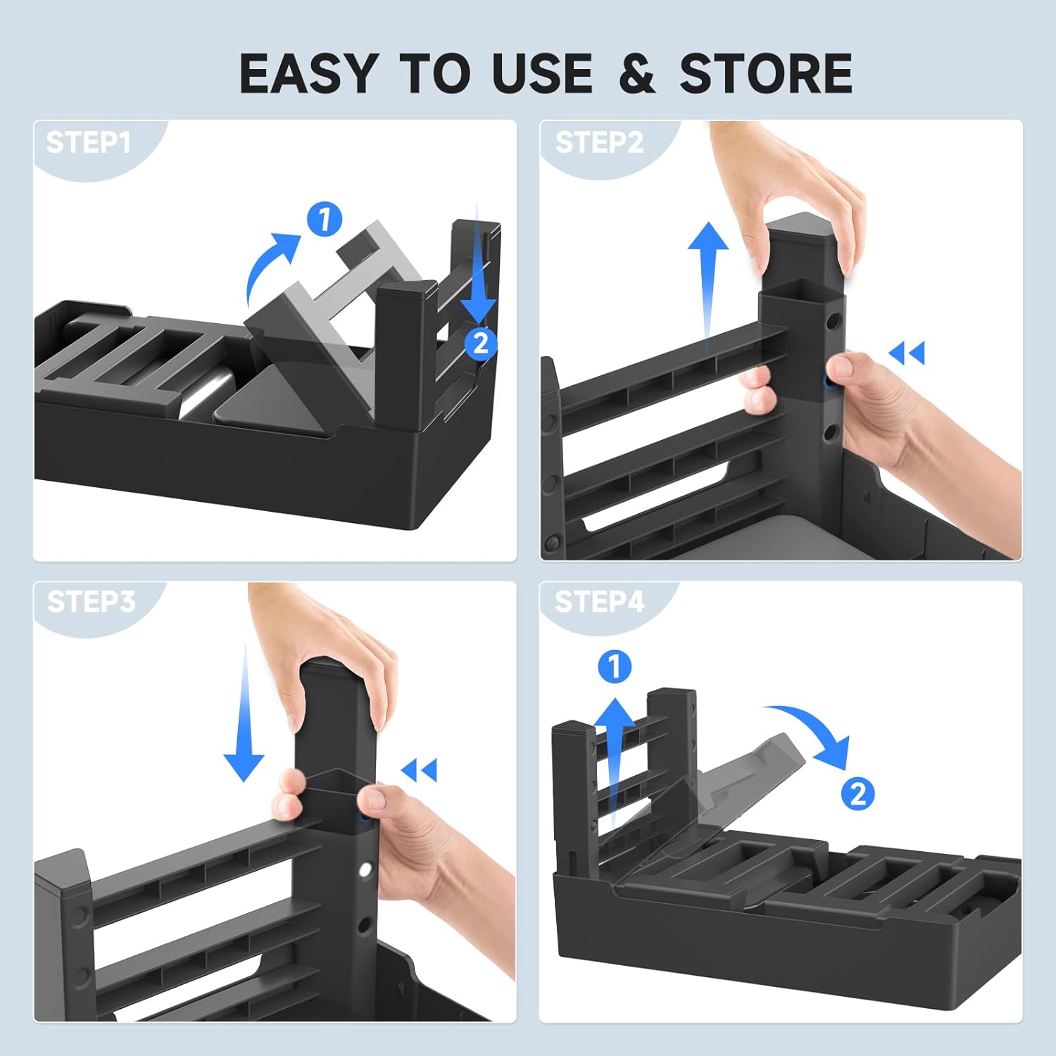EASY TO SET UP AND DISASSEMBLY: The 4 height elevated dog food and water bowl station is easy to assemble without any tools and simply disassembles and folds for easy storage when not in use. In addition, the collapsible legs make it easy to store and carry.