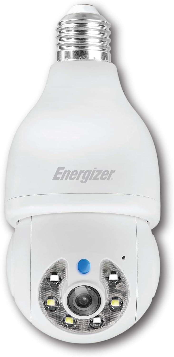 Energizer Smart Light Bulb 2K Security Camera 2-Pack, Outdoor Socket Camera, Auto Tracking, Pan & Tilt, Night Vision, 2-Way Audio, Instant Alerts, 2.4GHz Wi-Fi, Works with Google Home & Alexa