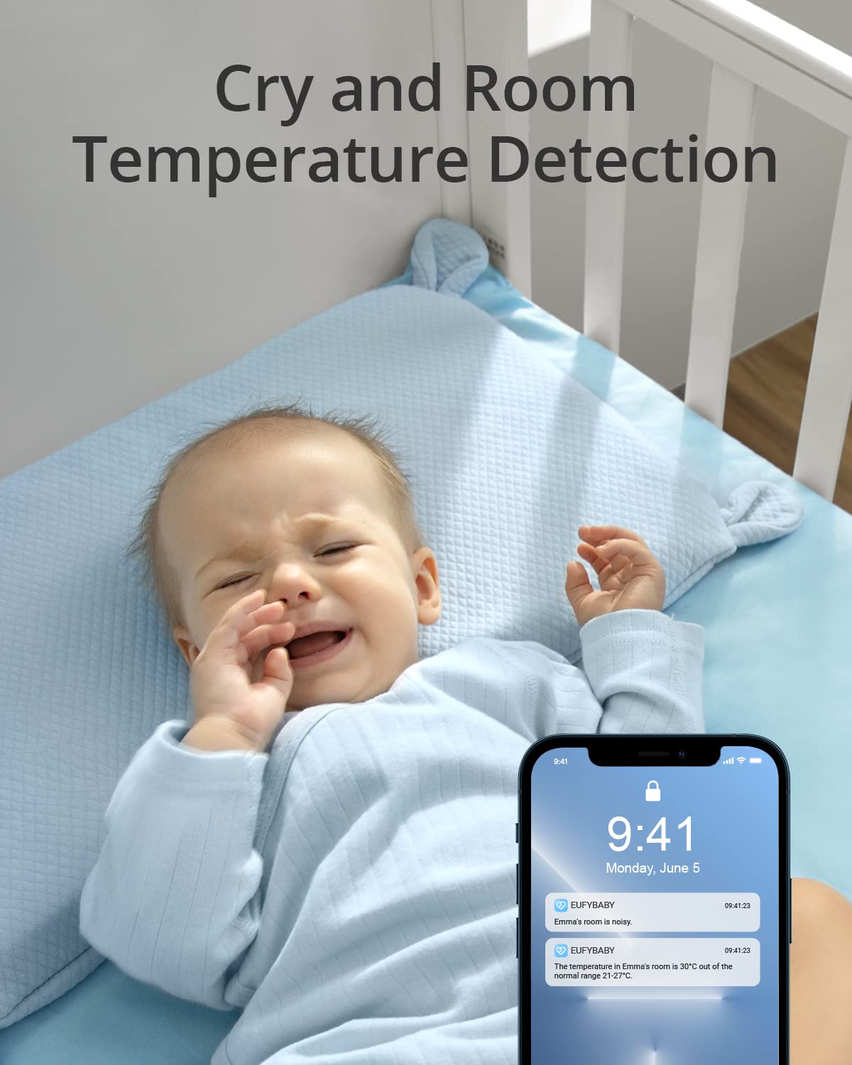 Sound and Temperature Detection: The eufy Wi-Fi Baby Monitor 2 is engineered to continuously monitor noise levels and room temperature, instantly notifying you of any significant changes. With crystal-clear audio, you can monitor your baby’s surroundings effectively, ensuring their utmost comfort and safety.