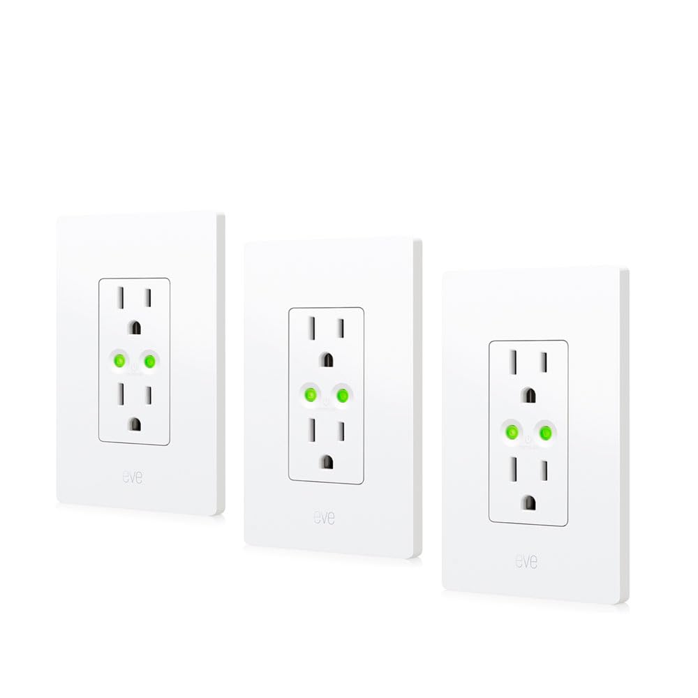 Eve Energy Outlet (Matter) 3-Pack – Smart Outlet & Power Meter, App & Voice Control, No Bridge, Thread, Works with Apple Home, Alexa, Google Home, SmartThings, 100% Privacy, Requires Thread Router