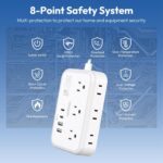 【 Reliable Surge Protector with Overload Protection Switch 】 The 1080 Joules surge protector power strip protects your electrical appliances from lighting, surges, or spikes. The extension cord with multiple outlets has a circuit breaker and an OFF/RESET switch that automatically shuts off to protect your equipment once power overload is detected (rated power: 1250W). A white soft indicator tells you whether the flat plug power strip is working. Safe and convenient.