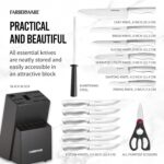 Farberware 15-Piece High-Carbon Stamped Stainless Steel Kitchen Knife Set with Wood Block, Steak Knives, Razor-Sharp, Black, Ultra-Sharp Blades, Ergonomic Comfort Grip