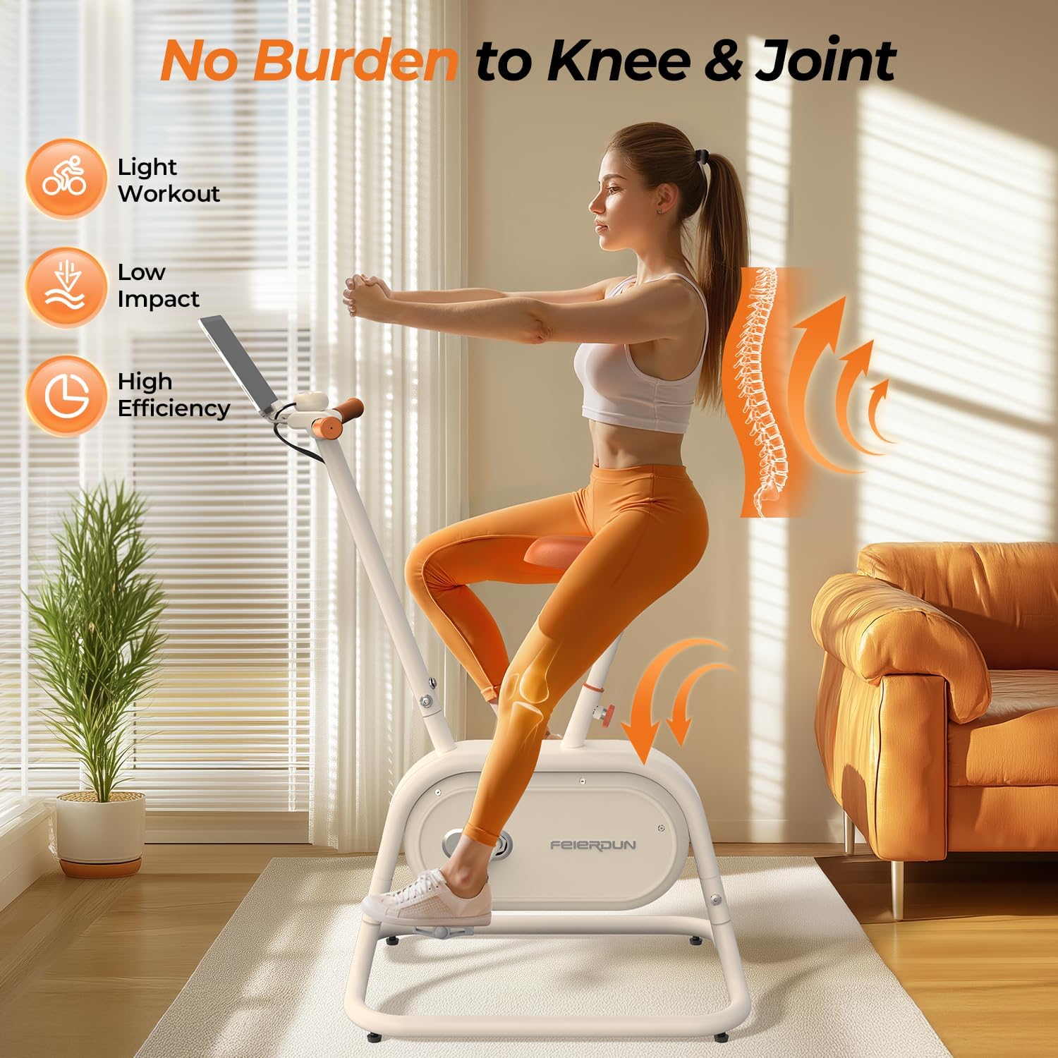 FEIERDUN Upright Exercise Bike, Smart Indoor Bike, Light Sport with Smart Bluetooth, Exclusive App Connectivity, Uniquely Designed Exterior Stationary Bike for Home, Office