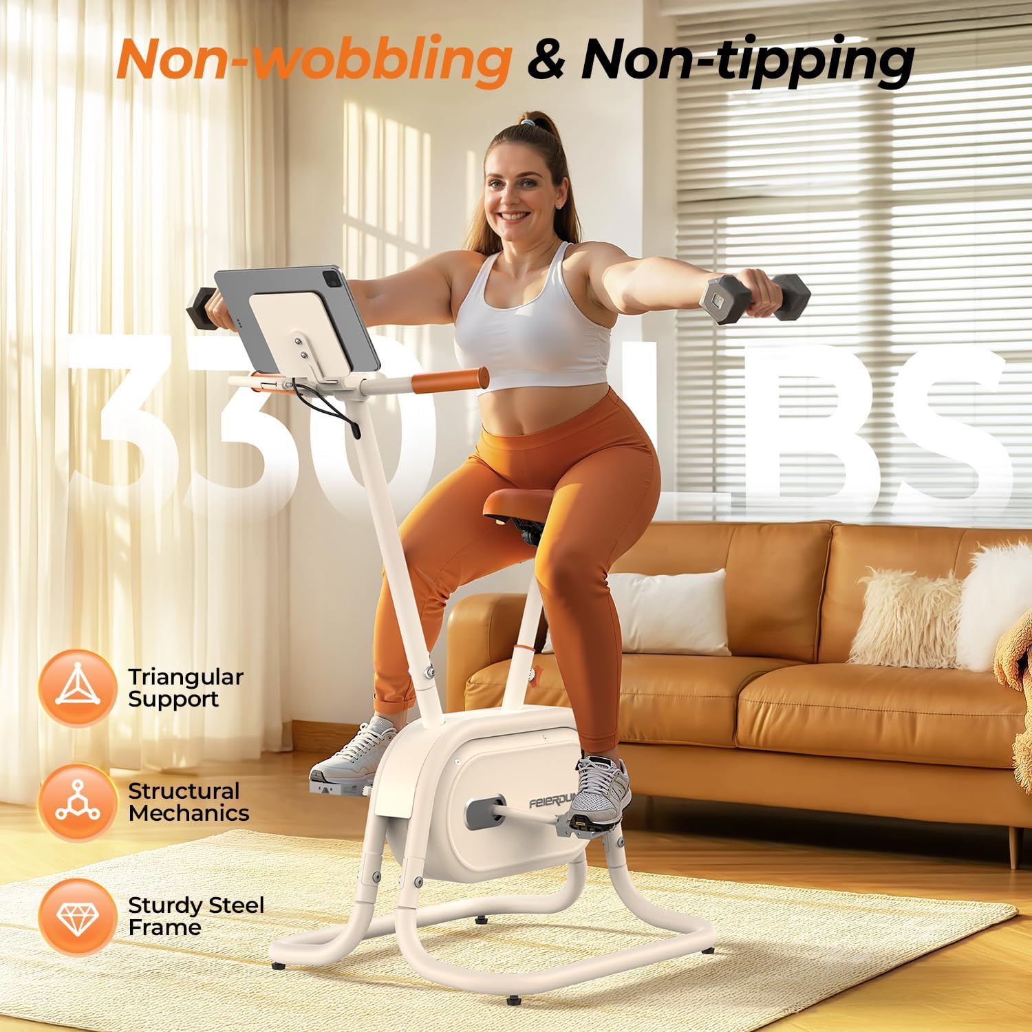 Sturdy Build with 330 lbs Weight Capacity: Designed for durability and safety, this upright exercise bike for home supports up to 330 lbs. Its robust steel frame and anti-slip base ensure exceptional stability, making it suitable for users of all sizes and delivering a worry-free workout every time