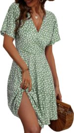 FENSACE Womens Sundress Summer Floral Short Sleeve Wrap V Neck A-Line Midi Dress