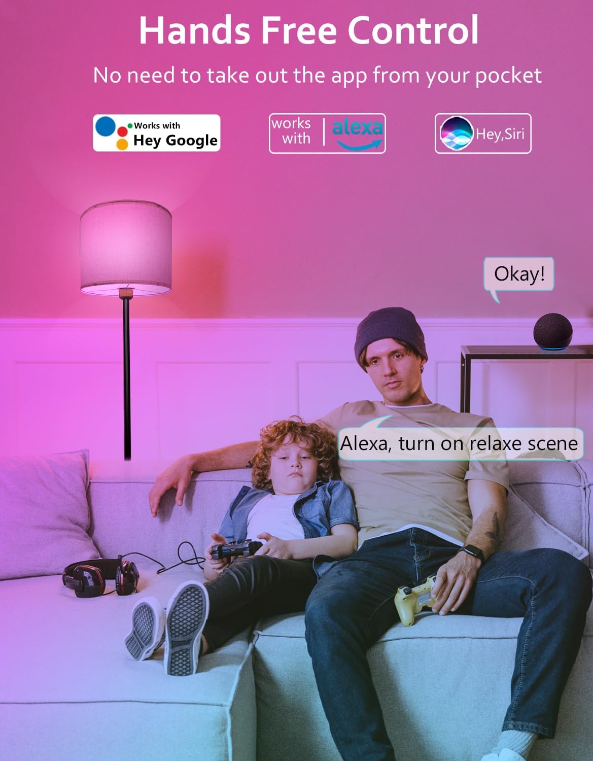 🗣【Multi-control】Smart Floor Lamp works with Alexa, Google and Siri,voice control your room lamp no need the app and remote. Remote can save your favorite scenes, with 60s timer Off, and color temperature dimming. Surplife app with powerful functions provide more convenience and fun for your room.