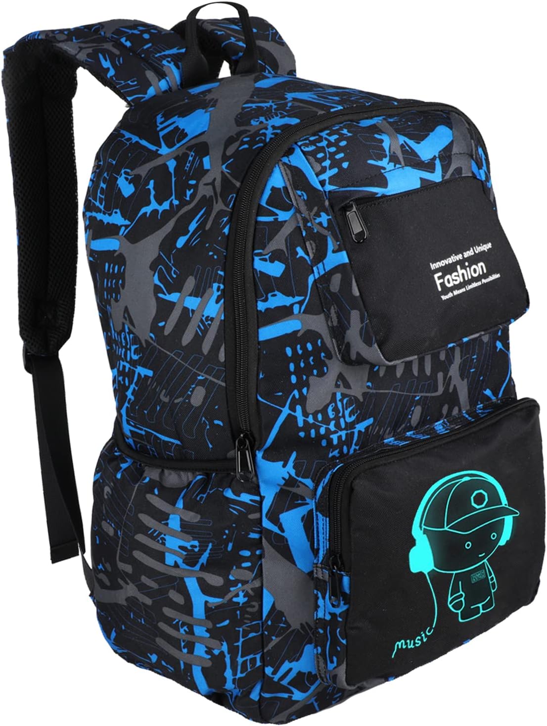 FLYMEI Cool Backpack for Boys, Luminous Backpack with USB Charging Port