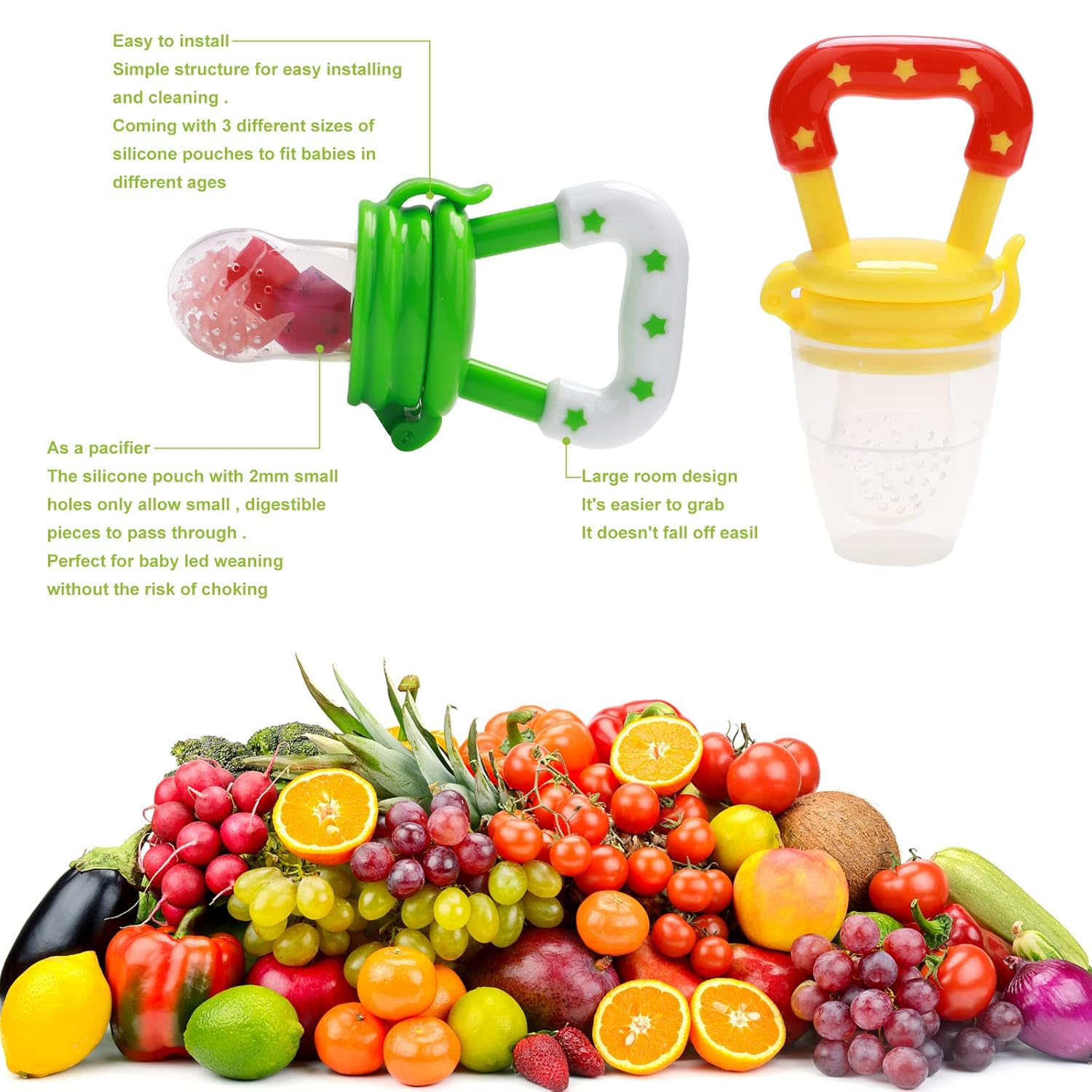 Perfect Gifts-BUY WITH CONFIDENCE:Baby Fruit Feeder are highly suitable for babies aged 3-6 months and 6-12 months. They are popular products for occasions such as Thanksgiving, Christmas, Birthday gifts, New Year gifts and other gift-giving events . Whether these Baby Food Feeder are meant for your newborn infant, nephew, grandkids or a couple of your pregnant friends, these unique treats make great gifts.