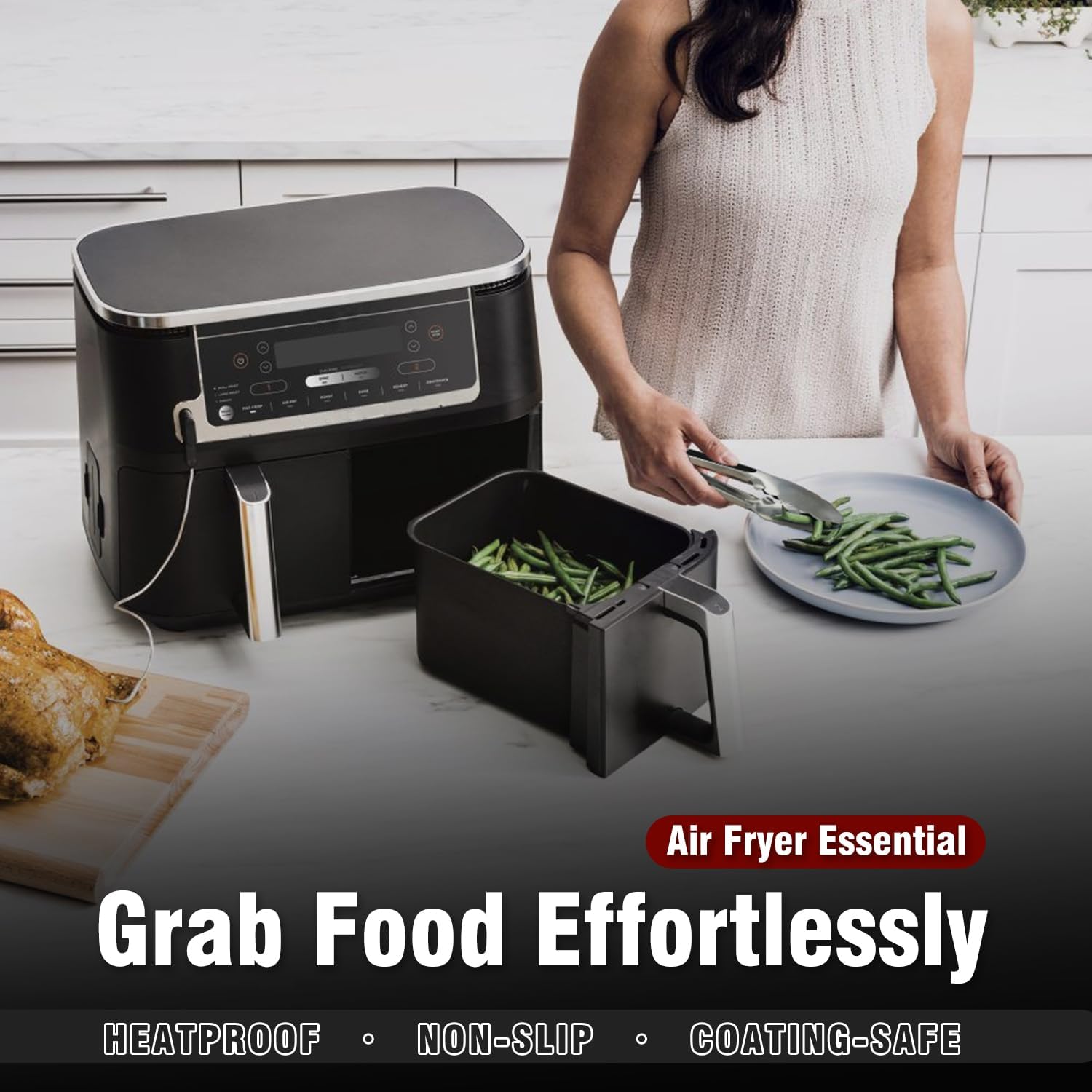★ERGONOMIC HANDLE DESIGN AND HEAT RESISTANT-The handle is cushioned with non-slip silicone,great for thumb rest,and ensures handle grip and control.The metal tong head is super heat resistant.Easy to rinse, dishwasher safe and easy to clean.