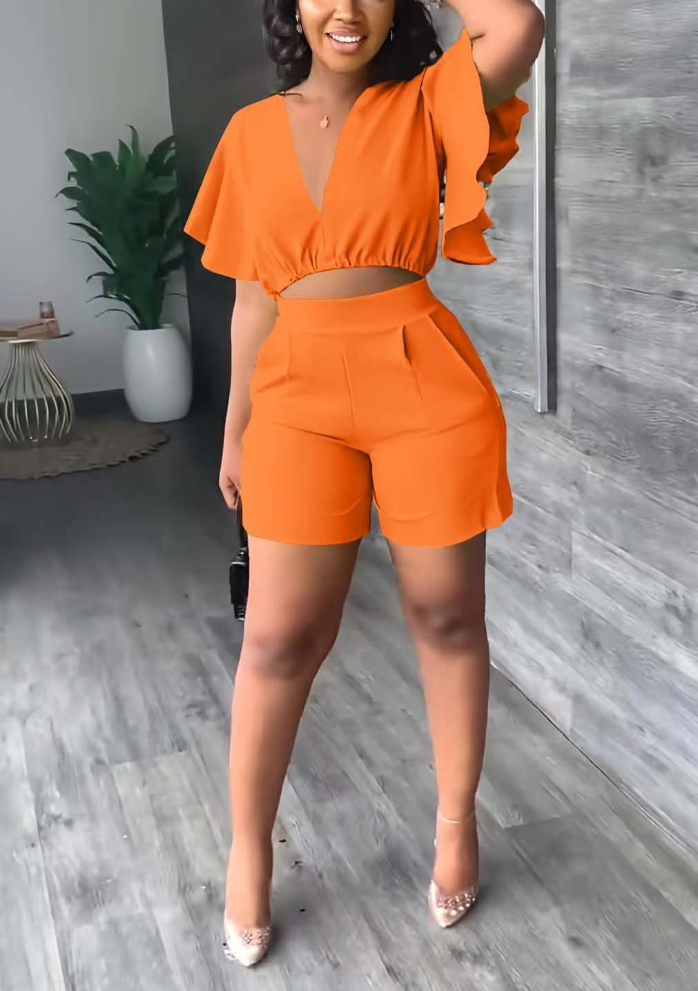 Fooullaide Womens Summer 2 Piece Outfit Set Crop Top Butterfly Sleeve Short Set Sexy Beach Vacation 2pc Sets