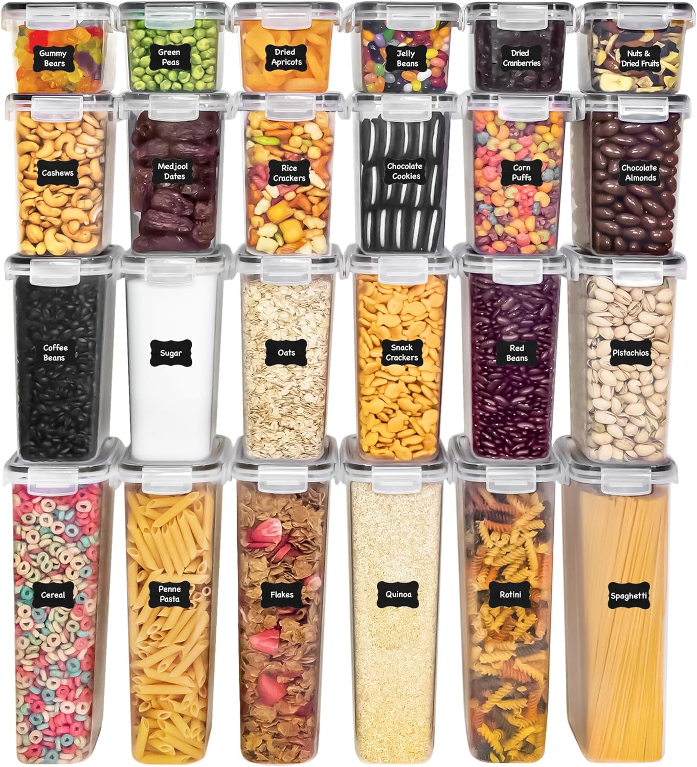 Freshware Kitchen Storage Containers with Lids, 48 PCS Airtight Food Storage Containers, Plastic Kitchen Containers, Pantry Containers for Cereal, Dry Food, Includes Labels, Marker & Measuring Spoons
