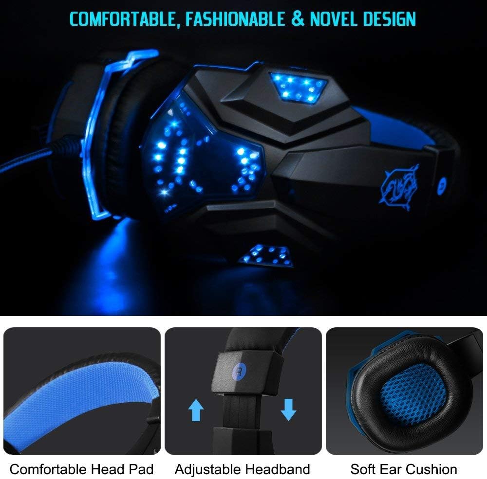 Gaming Headset with Mic and LED Light for Laptop Computer, Cellphone, PS4 and so on, DLAND 3.5mm Wired Noise Isolation Gaming Headphones – Volume Control.(Black and Blue)