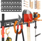 Widely Application: Our garage tool organizer rack provide superb organization for your garden tools, brooms, mops, shovels, rakes, trimmers, yard tools, hoses, ski gears and more. Will keep your garage, utility room and shed organized without messy, give you an efficient work environment. It can be as new home essential checklist product or as a perfect gift for your father on Fathers’ Day