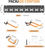 Adjustable Pegboard Design: This garage storage and organization rack is 48 inches long. Equipped with 3 rails and 15 hooks (Includes 6 x dual-hooks, 3 x single-hooks and 6 S-hooks). The rails of this yard tool rack are with Pegboard design, which allow you to adjust the hooks easily to meet your actual needs