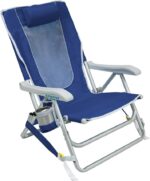 GCI OUTDOOR Backpack Beach Chair | Reclining Folding Chair with Durable Armrests, Drink Holder & Carry Straps, Perfect for Beach Trips & Picnics — Nautical Blue