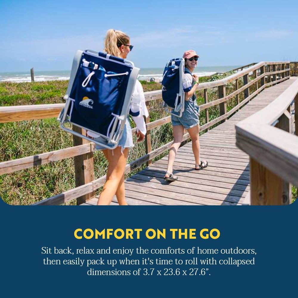 SUN. SURF. SAVOR. Unwind oceanside in the Backpack Beach Chair, an adult chair from GCI Outdoor. Have it all with this reclining chair — stash essentials in the large back pocket and catch some rays with your toes in the sand.