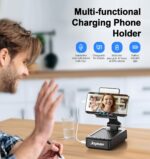 Gifts for Men Women, Phone Stand with Bluetooth Speaker and Charging Function 360° Rotable Angel Adjustable Cell Phone Holder with HD Stereo Sound Fits All Phones,Tablet (Black)