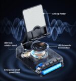 3600mAh Battery and Non-slip Design- Our cell phone holder comes with a large capacity battery which serves as a power bank (not wireless charging), and the play time is up to 40h at 50% volume in fully charged state. Plus, remaining power is visible from the battery indicator light. Panel and base are covered with silicone pads which can prevent slipping.