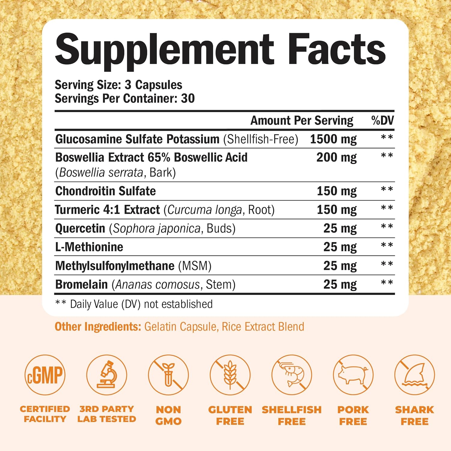 JOINT HEALTH – All-in-one joint support supplement formulated with Glucosamine, Chondroitin, MSM, Turmeric, Quercetin, Bromelain, L-Methionine, and Boswellia. Supports long-term joint health, making it ideal for aging adults and those with active lifestyles, especially during seasonal changes or after high-impact sports or physical activity.*