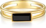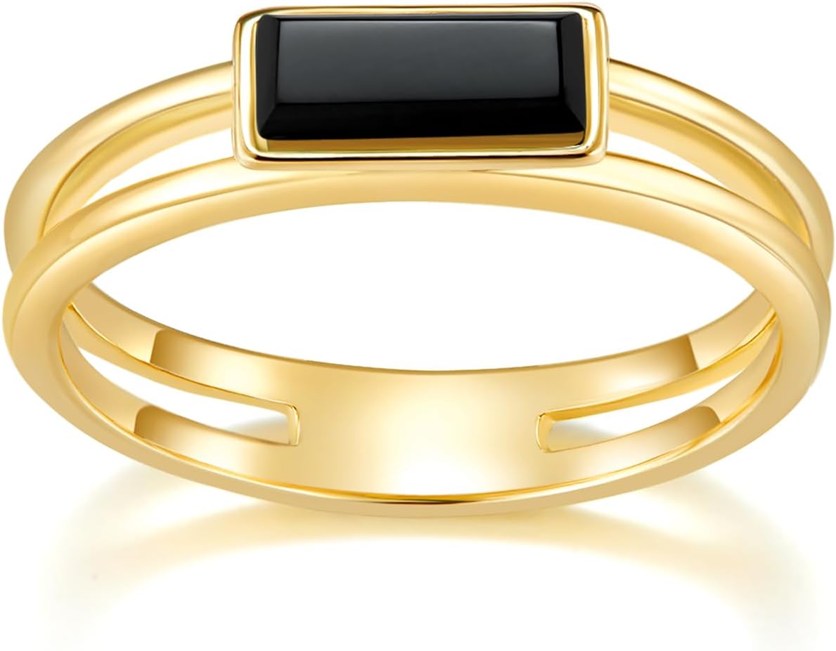 Gold Rings|Silver Rings| Black Onyx Rings|14K Gold/White Gold Plated Rings For Women| Wedding Band|Gold/Silver Rings for Women 4mm Band Size 4-12