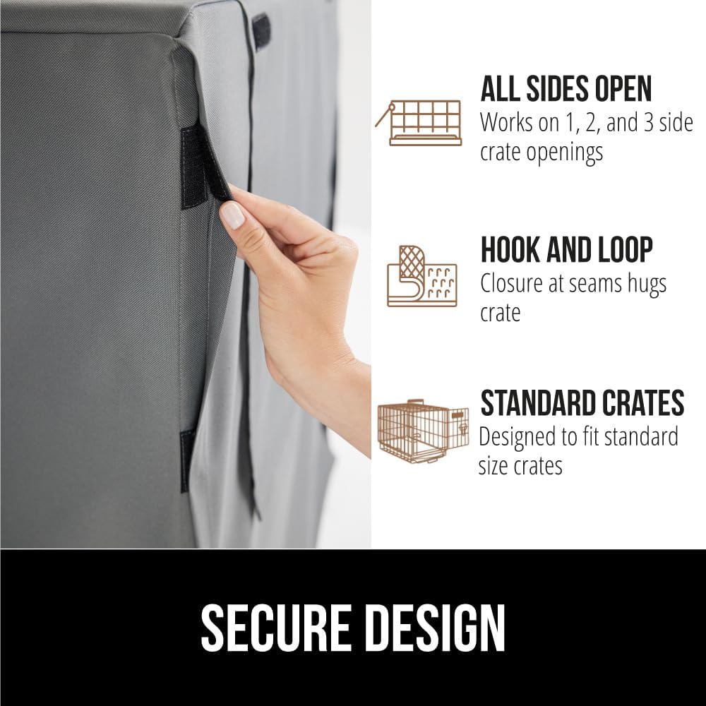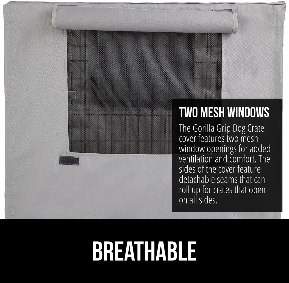 GORILLA GRIP Dog Crate Covers Compatible with Amazon Basics Dog Crates, All Sides Open, Privacy Cover Fits 24″ Wire Kennel, Breathable Mesh Windows, Light Reducing Puppy Training Cage Topper, Gray