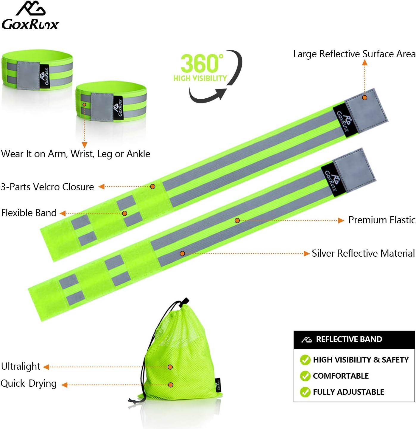 GoxRunx Reflective Bands Running Gear 6 Pack-Adjustable Reflective Armband Arm Wrist Ankle Leg Bands Reflectors -Reflective Tape Straps for Clothing Night Running Cycling Walking -Slap Bracelets