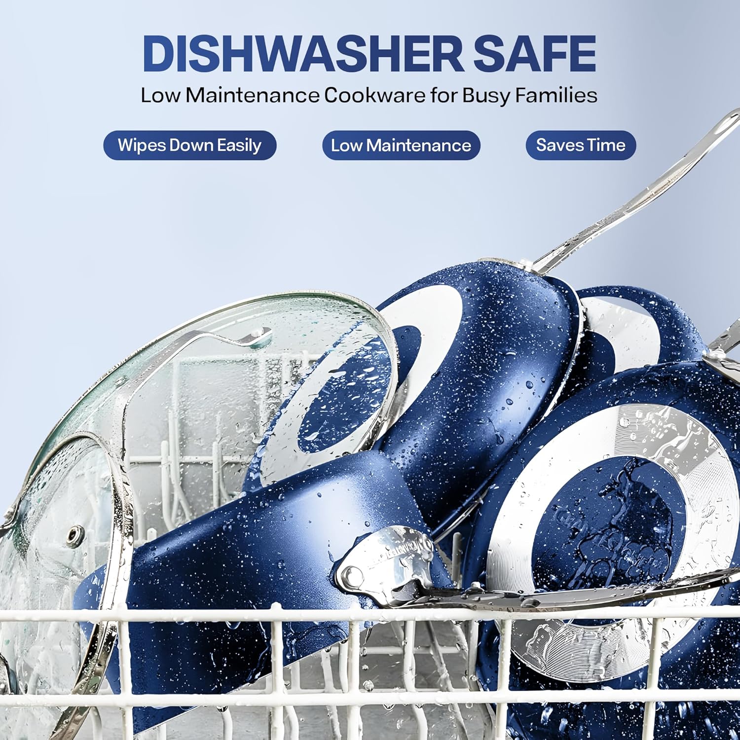 Effortless Cleanup, Dishwasher Safe: Spend less time with cleanup! After all the cooking and prepping is done, place cookware in the dishwasher for quick and easy cleanup.