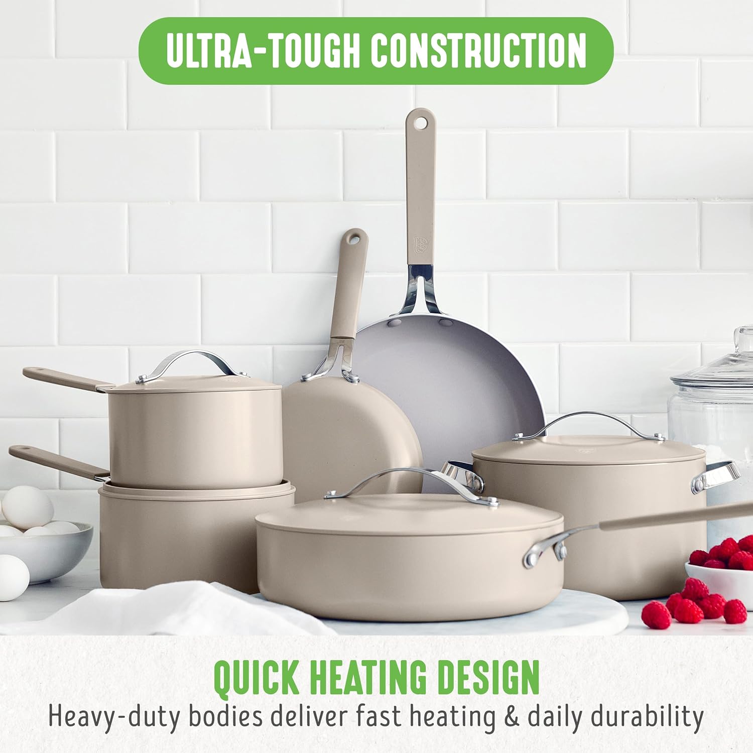 TOXIN-FREE: Our healthy ceramic nonstick coating is derived from sand and free of PFAS, PFOA, lead, and cadmium for worry-free cooking.