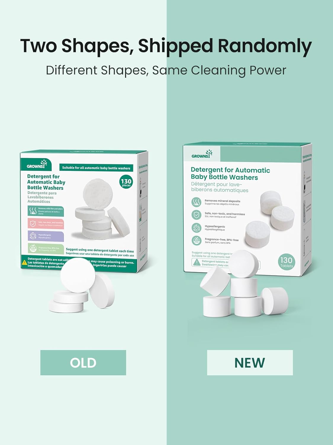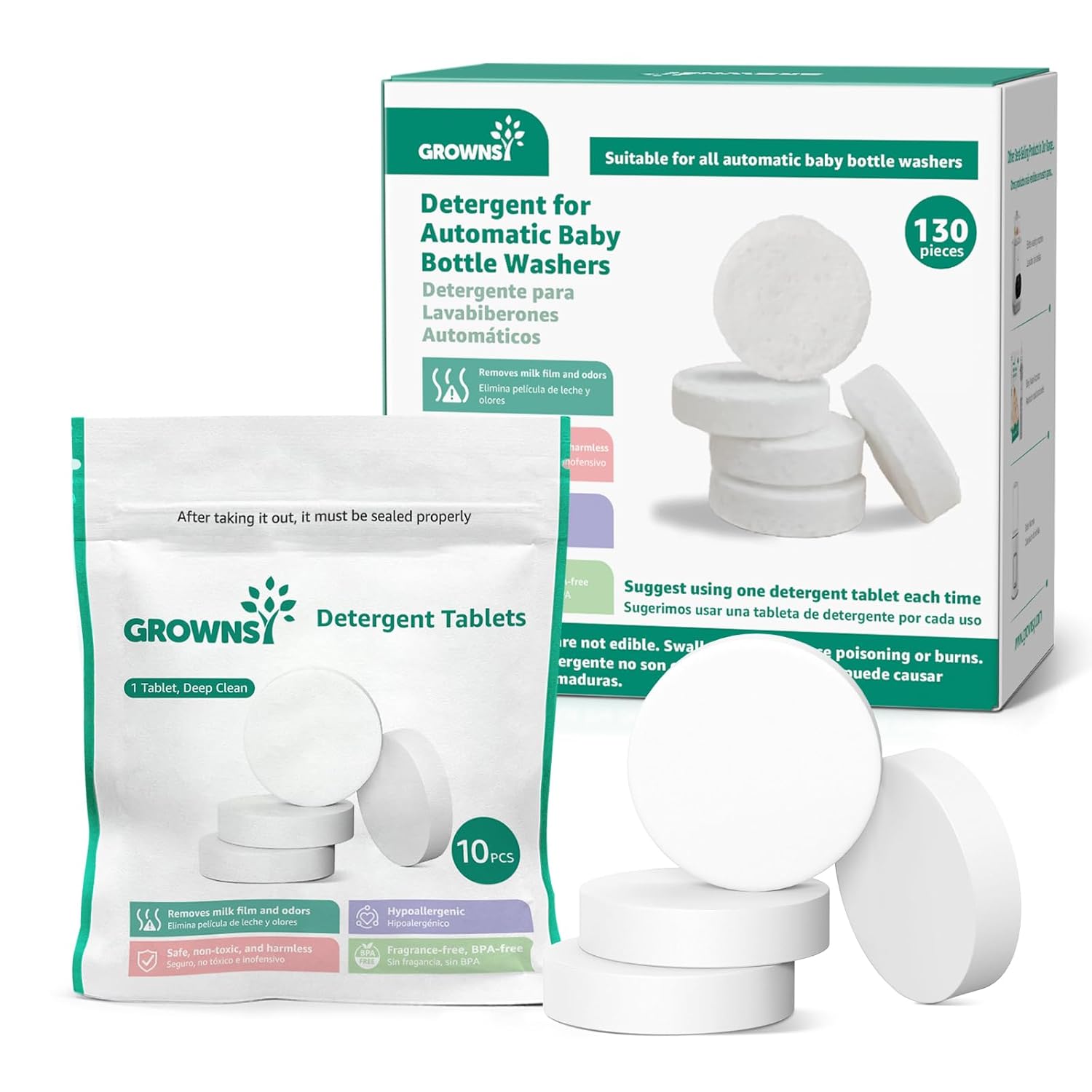 GROWNSY Detergent Washing Tablets 130 PCS for Momcozy, Baby Brezza, Papablic Bottle Washer, Compatible with All Brands Baby Bottle Washers