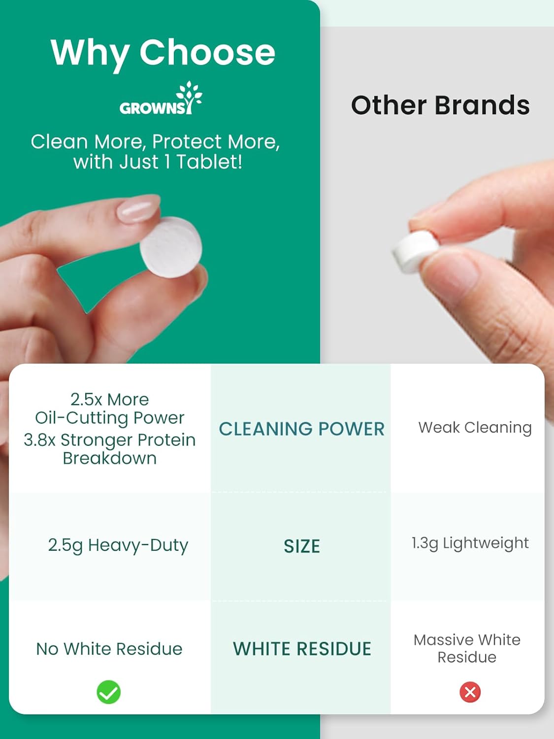 Compatibility: Intended for GROWNSY, Baby Brezza, Momcozy, Papablic bottle washers, and all other brands. GROWNSY detergent tablets gently and efficiently remove milk film from baby bottles and pump parts, making them an essential must-have for a newborn’s registry.