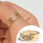Hammered Gold Ring, Gold Stacking Rings, Minimalist Rings, Skinny Rings for Women (4, Gold Fill)