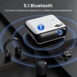 [ Bluetooth 5.1 Technology ] – Connect your Bluetooth projector to Bluetooth speakers for a richer, more powerful sound experience, or pair with headphones for private, immersive viewing without disturbing others. Perfect for both shared movie nights and personal entertainment, this smart projector is also a great Bluetooth projector for iPhone users