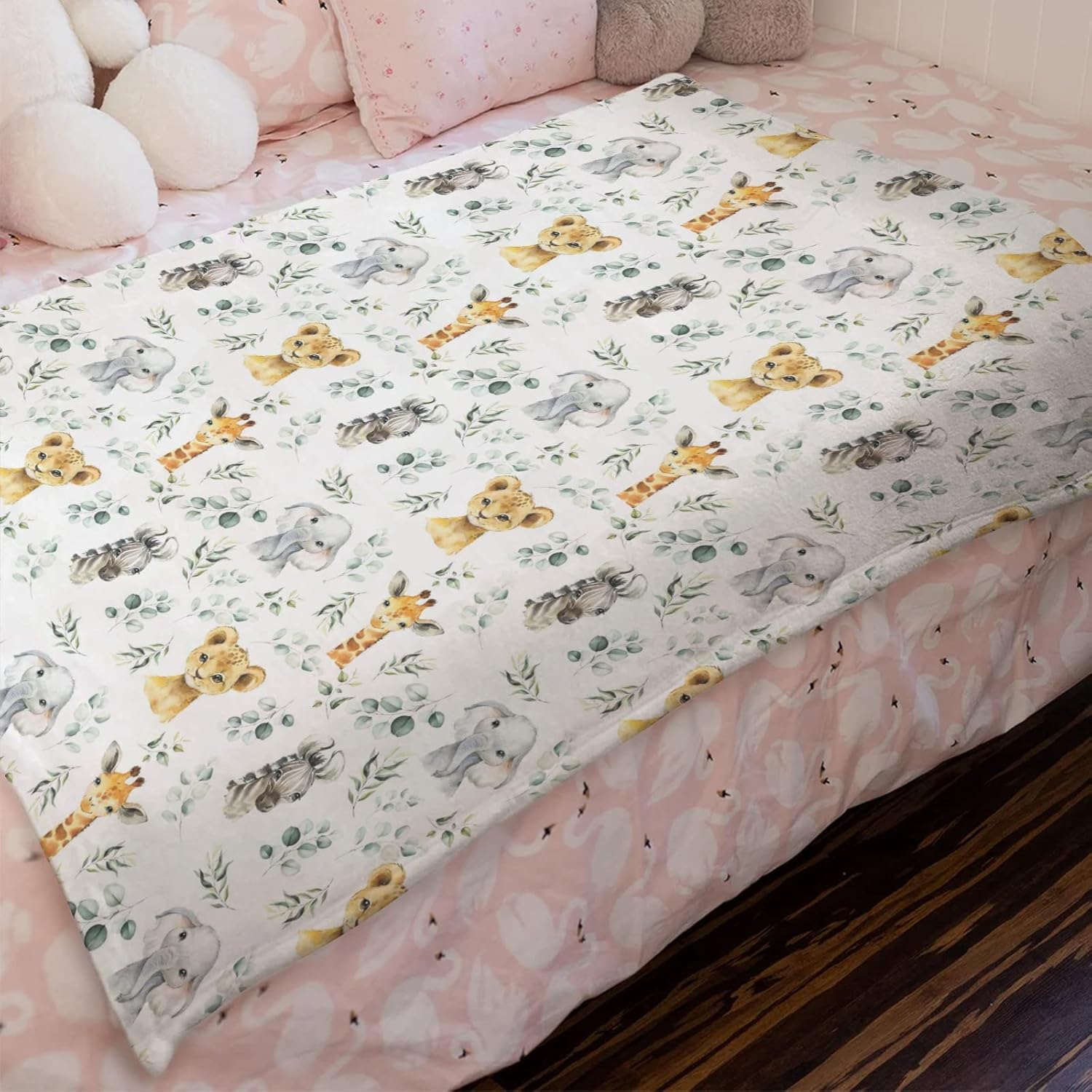 HawSkgFub Safari Jungle African Animal Eucalyptus Leaf Baby Boy Blanket, Elephant Giraffe Lion Flannel Fleece Nursery Bed Receiving Swaddle Newborn Infant Crib Toddler Crib Bedding Shower Gift 30 x 40