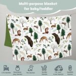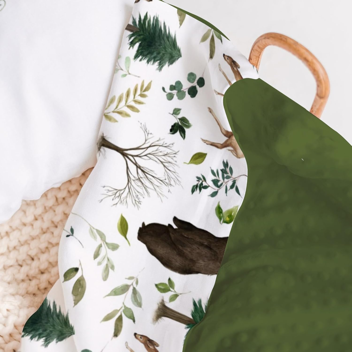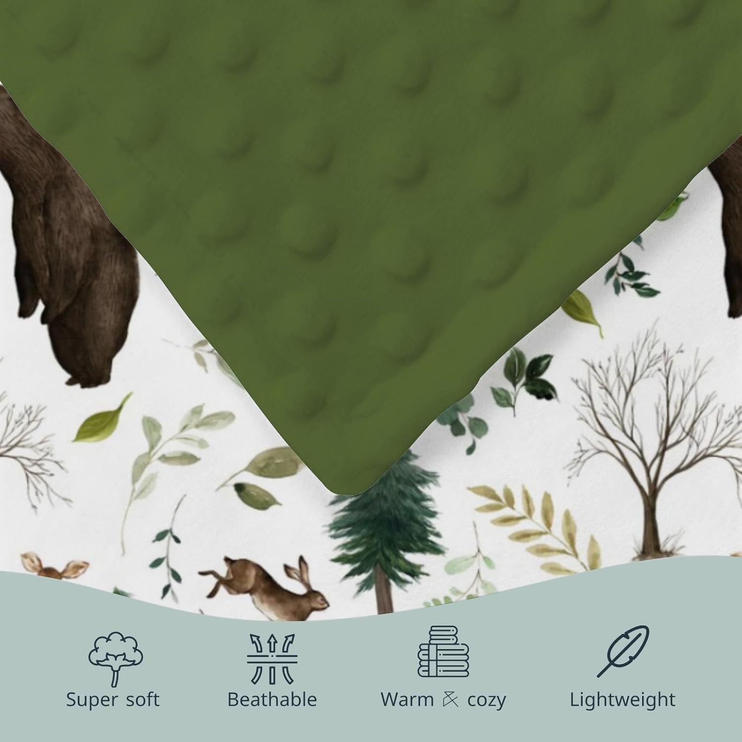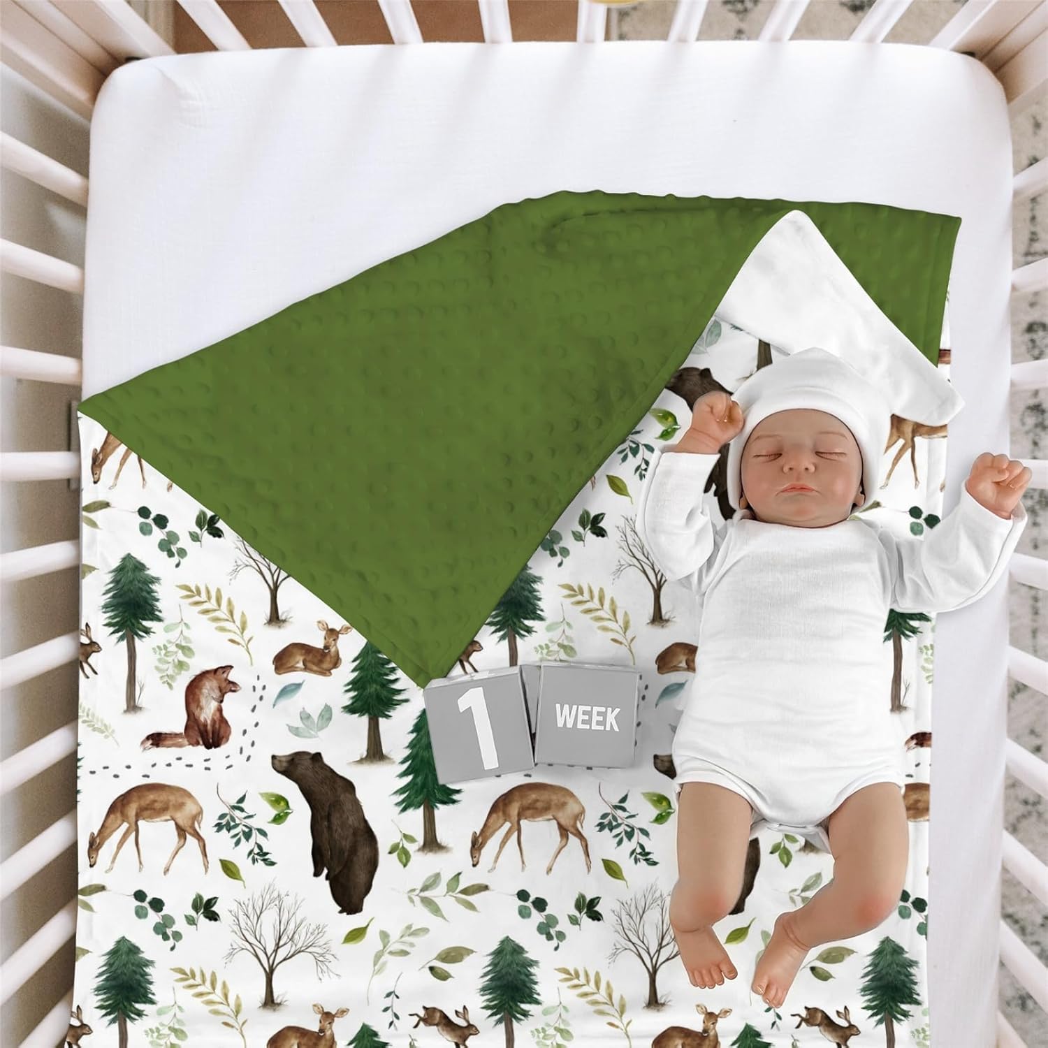 HawSkgFub Woodland Animal Mink Baby Blanket with Dotted Backing Boy Girl Gift, Green Forest Bear Fox Deer Double Layer Nursery Bed Blankets, Soft Plush Newborn Infant Toddler Kid Crib Bedding 30 x 40