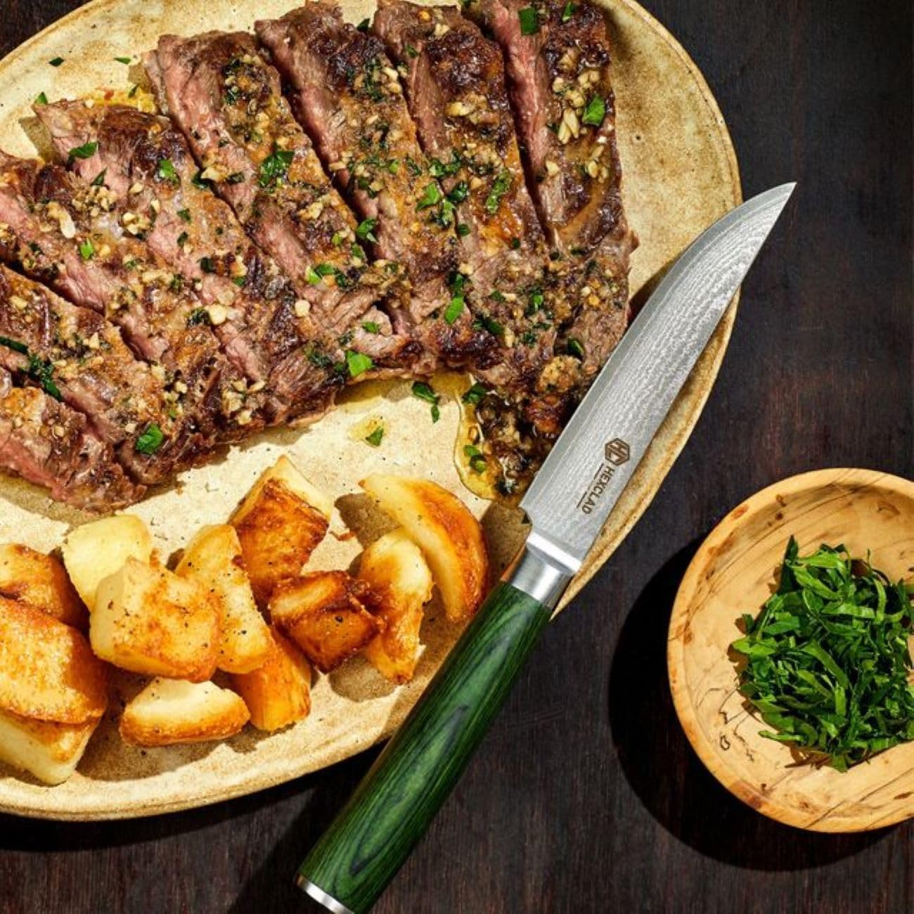 HexClad 10 Piece Knife Set – 4 piece Steak Knives and 6 Piece Essential Knife Set, Fine Edge, Non-Serrated, 60 Rockwell Rating, Forest Green Pakkawood Handles