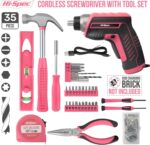 Hi-Spec 35pc Pink Tool Kit with 3.6V USB Electric Screwdriver and Drill Set. Complete Women Tool Set