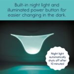 Built in changing light and illuminated power button automatically shuts off after 10 minutes!