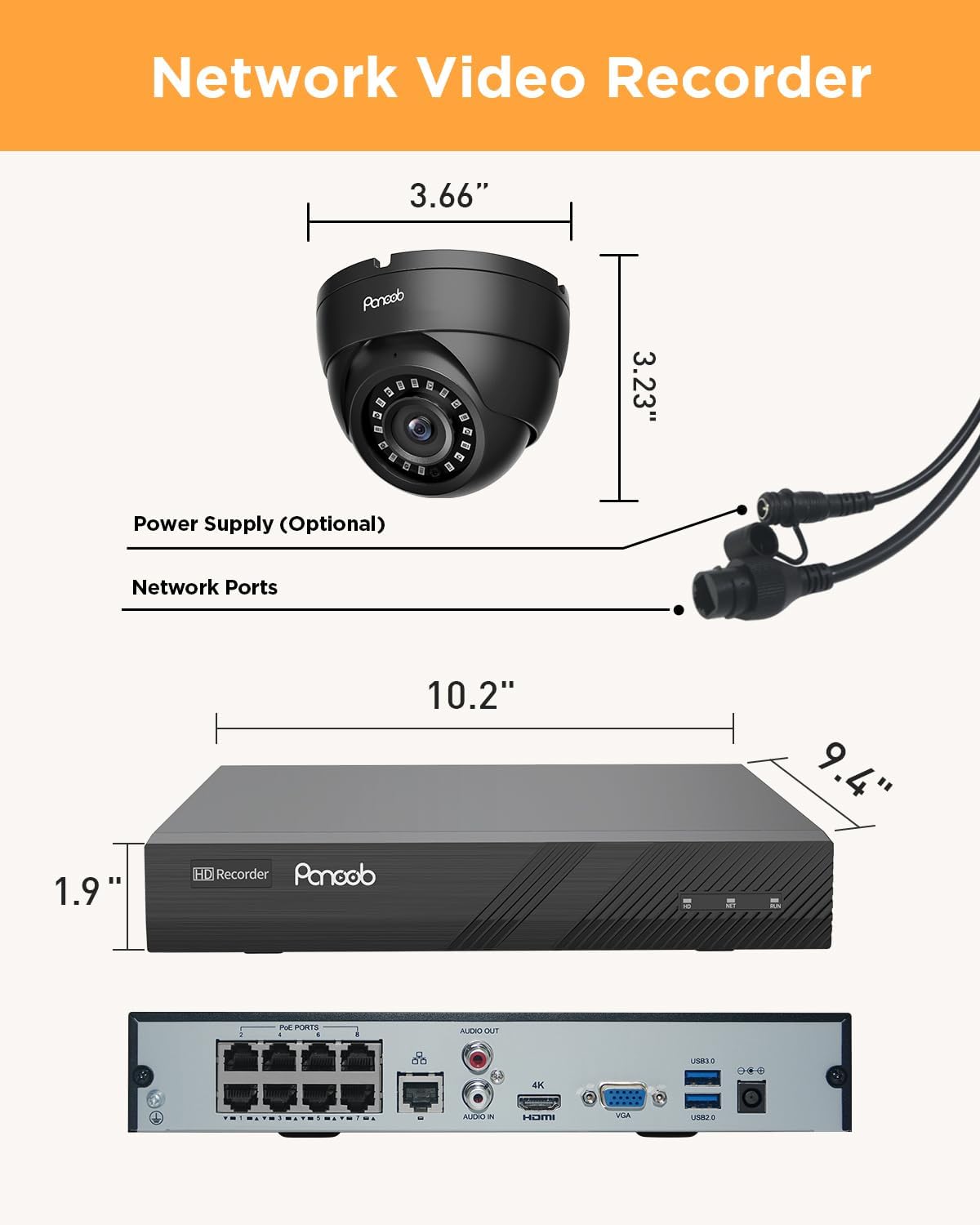 Plug and Play: Benefitted by PoE technology, Panoob PoE NVR system transmits video, audio and power combined through one cat5e network cable, which can provide you an extremely easy way for project installation, it is perfect for beginners and DIY enthusiasts to build their own video surveillance systems.